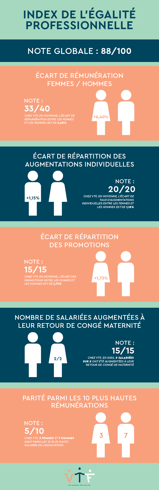En outre, nous menons une politique offensive pour l’intégration des travailleurs en situation de handicap à travers des campagnes internes de sensibilisation à l’accueil des travailleurs en situation de handicap chaque SEEPH (Semaine Européenne pour l’Emploi des Personnes Handicapées), le développement de partenariats avec les prescripteurs de l’emploi (CAP EMPLOI…) et nous participons occasionnellement à des salons dédiés au recrutement des travailleurs handicapés. L’objectif de VTF Vacances à 2025 étant de remplir son obligation d’emploi en matière de salariés en situation de handicap.